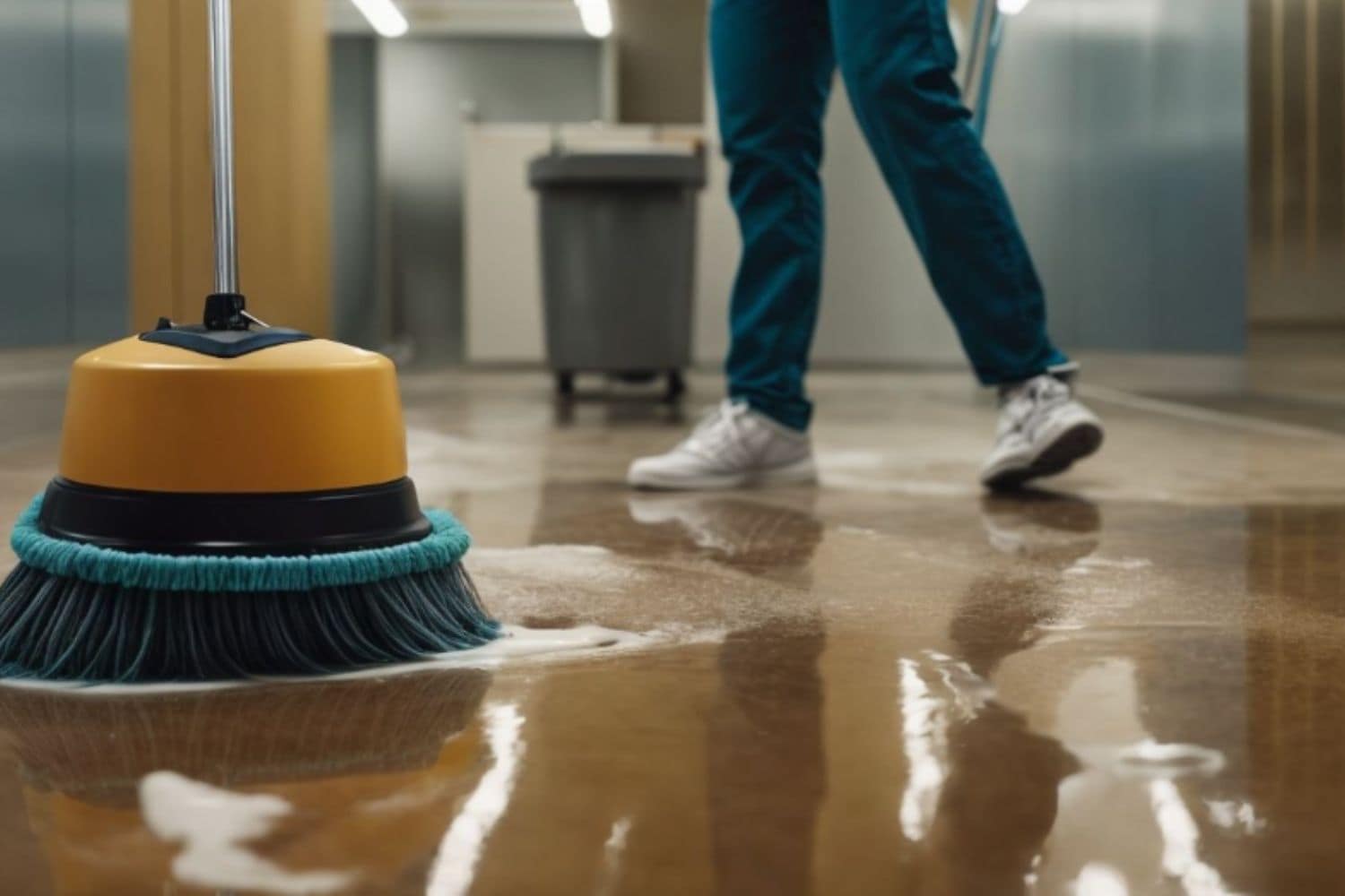 - Use a clean bucket and mop to apply the solution evenly across the resin floor surface.